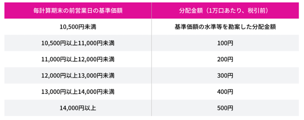 • 予想分配金提示型(基準価額により0〜500円に変動)