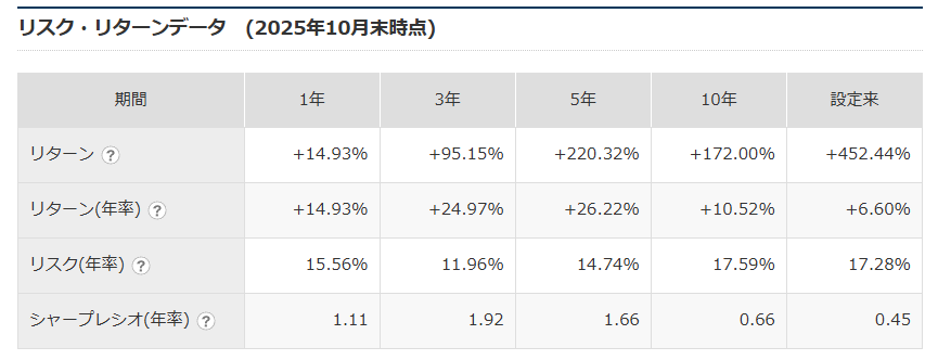 ・アクティブファンドにもかかわらず世界株インデックスと同等