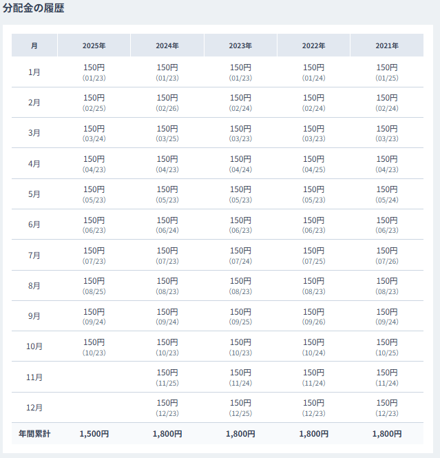 これらの荒れ相場をすべて乗り越えながら、インベスコは5年以上にわたり150円の分配を一度も崩していません。これは毎月分配型の中でも際立った安定性です。