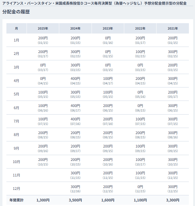 純資産ランキング3位のアライアンスバーンスタインDコースやWCM世界成長株厳選ファンドなどの毎月分配型ファンドは、基準価額が一定ラインを下回ると分配金が減りやすく、状況次第では特別分配金が出ず無配になることすらあります。毎月分配型の“弱点”がまさにここです。