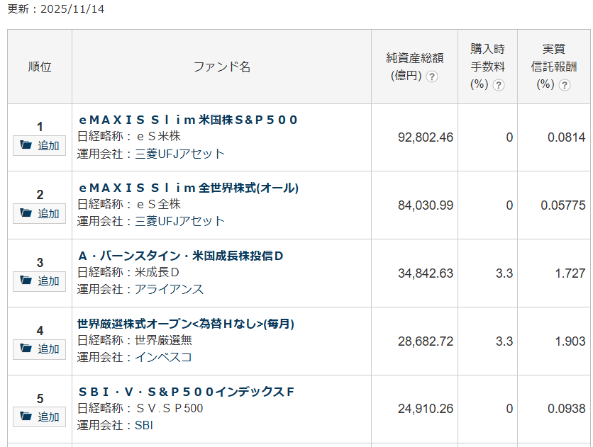 インベスコ世界厳選株式オープン<為替ヘッジなし・毎月分配型>(世界のベスト)は、2025年11月14日時点で投資信託の純資産ランキング4位に入るほどの大人気ファンドになりました。