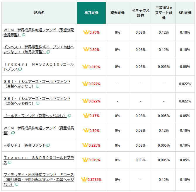 - SBI・ゴールドファンド:年約0.02%