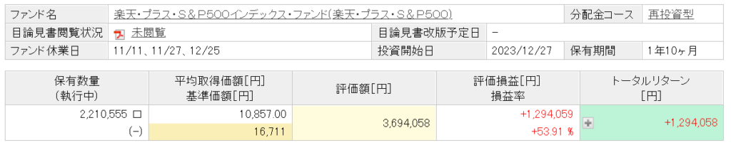 • ファンド名:楽天・プラス・S&P500インデックスファンド