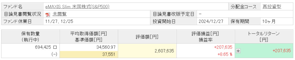 • ファンド名:eMAXIS Slim 米国株式(S&P500)