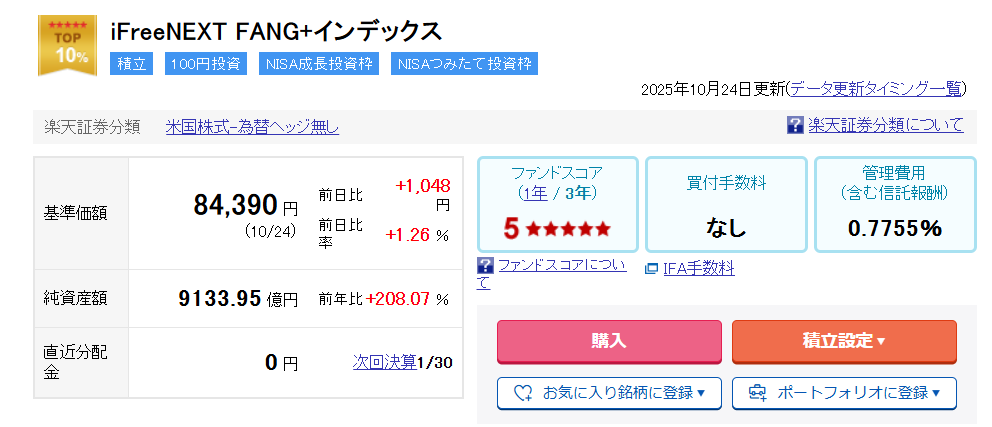 • つみたて投資枠:iFreeNEXT FANG+インデックスファンド(120万円)
