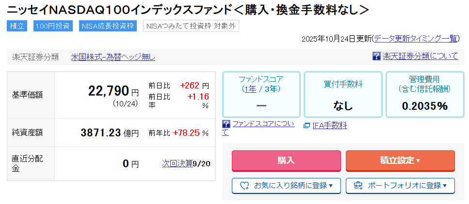 • 成長投資枠:ニッセイNASDAQ100インデックスファンド(240万円)